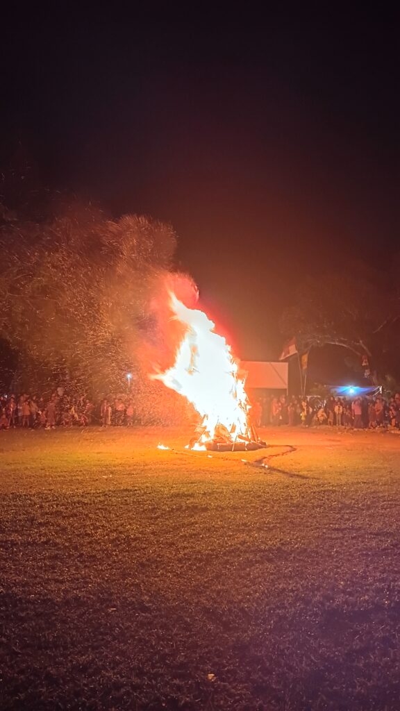 Meskipun pada malam pertama perkemahan diguyur hujan sehingga peserta harus bermalam di dalam kelas, semangat mereka tidak surut. Malam kedua justru menjadi puncak acara yang paling ditunggu-tunggu, yaitu penyalaan api unggun dan pentas seni dari setiap regu pramuka SD maupun SMP. Orang tua juga turut hadir menyaksikan prosesi khidmat penyalaan api Dasa Darma yang berlangsung meriah dan penuh makna.